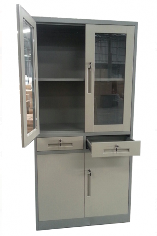 จำนวนเก็บ 4ชั้น มี 2แผ่นชั้นปรับระดับได้ มีลิ้นชักเหล็ก 2 ลิ้นชักพร้อมกุญแจล็อก